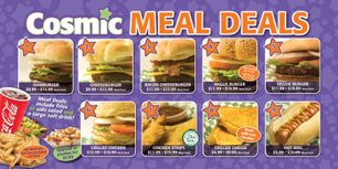 A family favorite, is sure to please your appetite while you take a break from your unlimited playtime in Cosmic's galactic tunnels and slides. With a full menu of many kid favorites and tasty treats, you can relax and enjoy a stress free meal in the space that knows no boundaries. Our restaurant is fully equipped with high chairs, and our friendly staff is sure to make your meal a pleasant one.